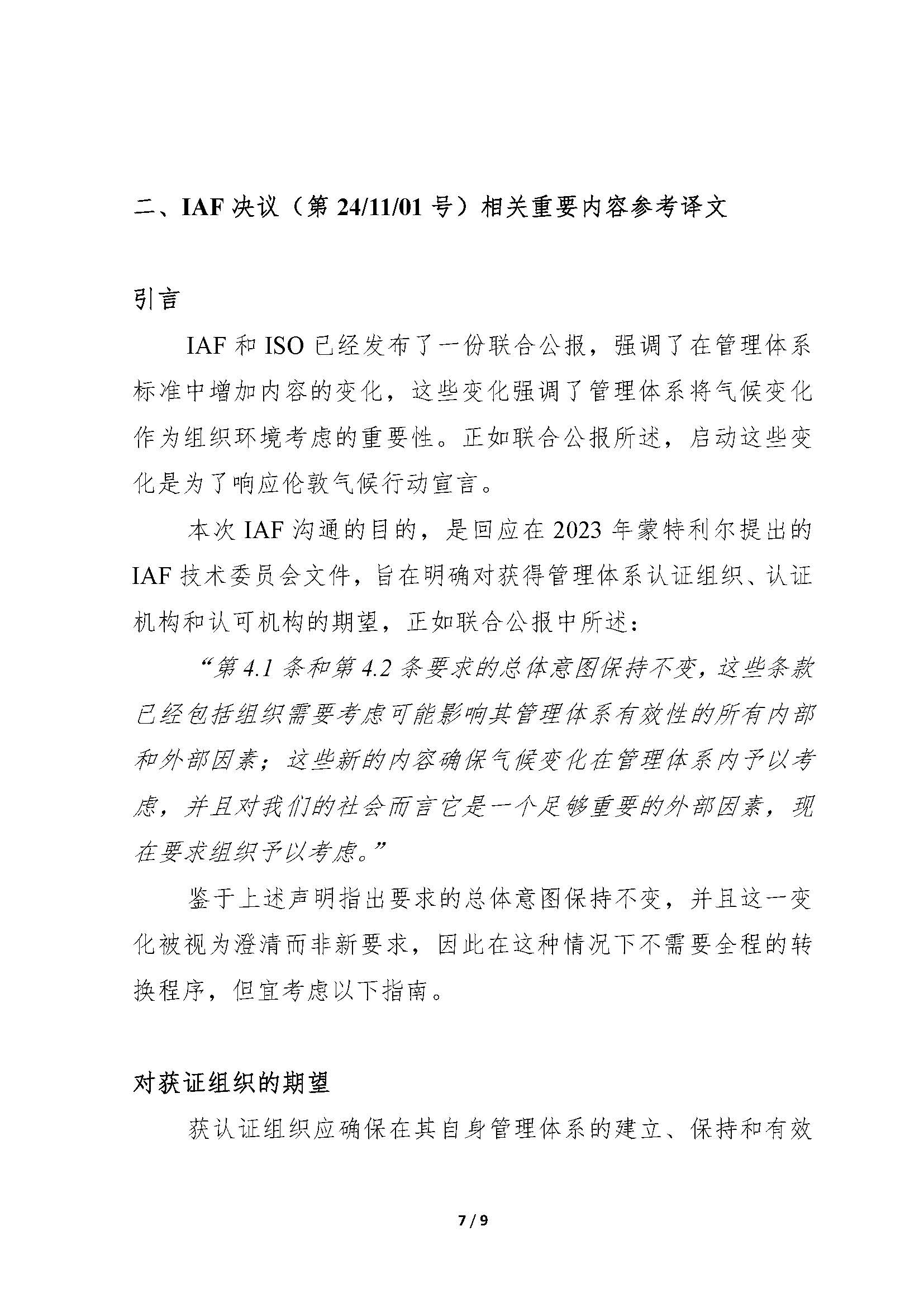 upload/IAF和ISO在管理體系標(biāo)準(zhǔn)中增加對(duì)氣候變化考慮的聯(lián)合公報(bào)及相關(guān)情況的通知.pdf |