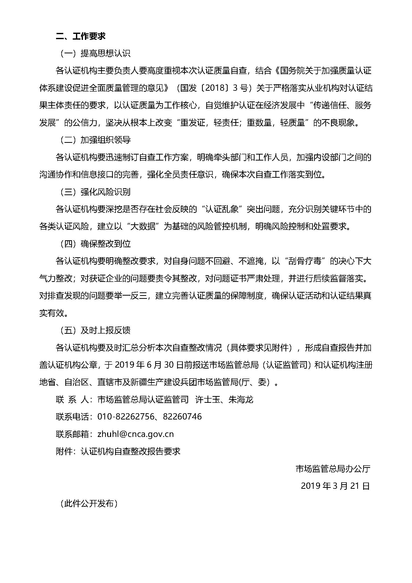 市場監(jiān)管總局辦公廳關(guān)于深入開展認(rèn)證機(jī)構(gòu)認(rèn)證質(zhì)量自查工作的通知-市監(jiān)認(rèn)證2019-18號發(fā)表時(shí)間:2019年05月23日