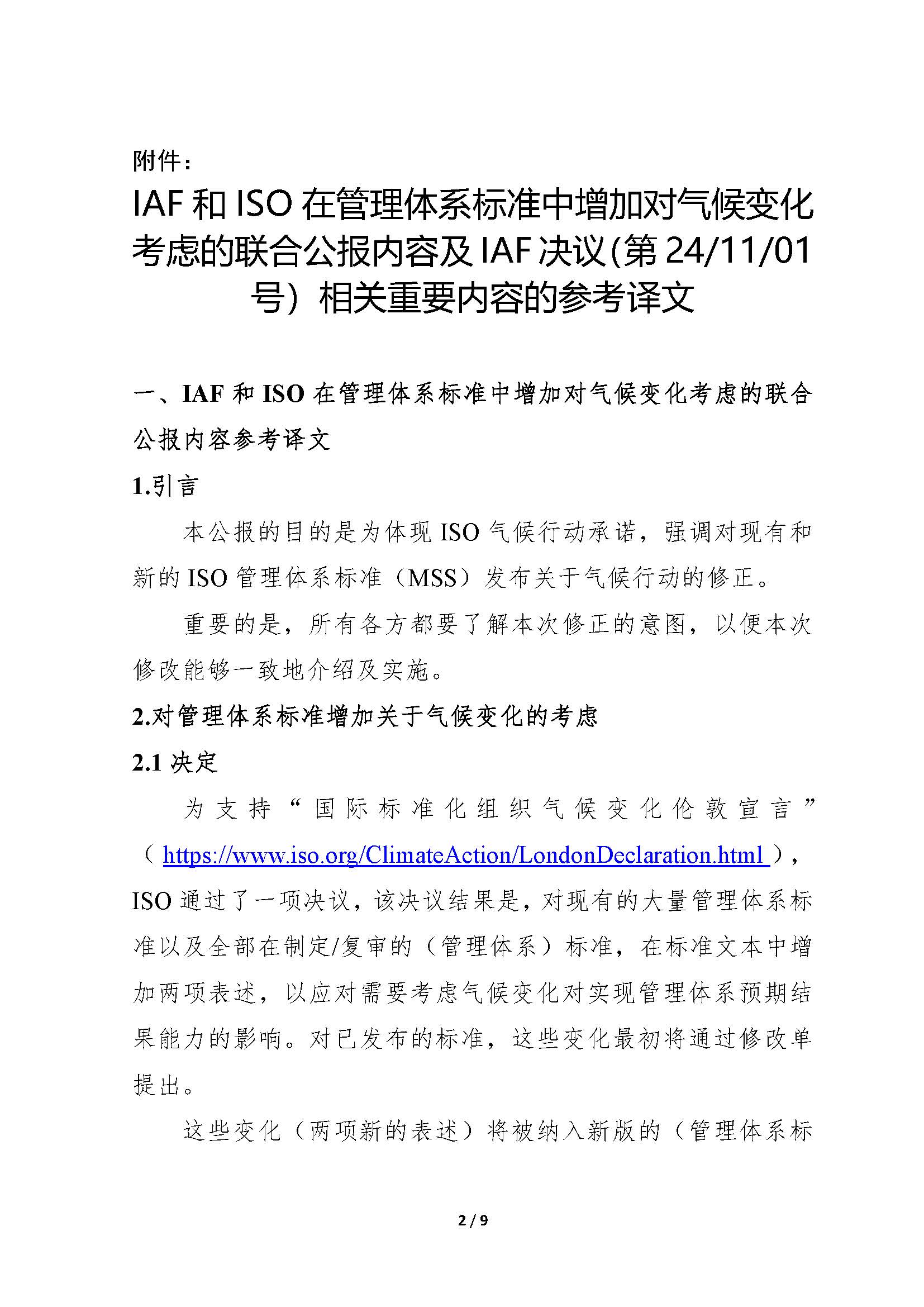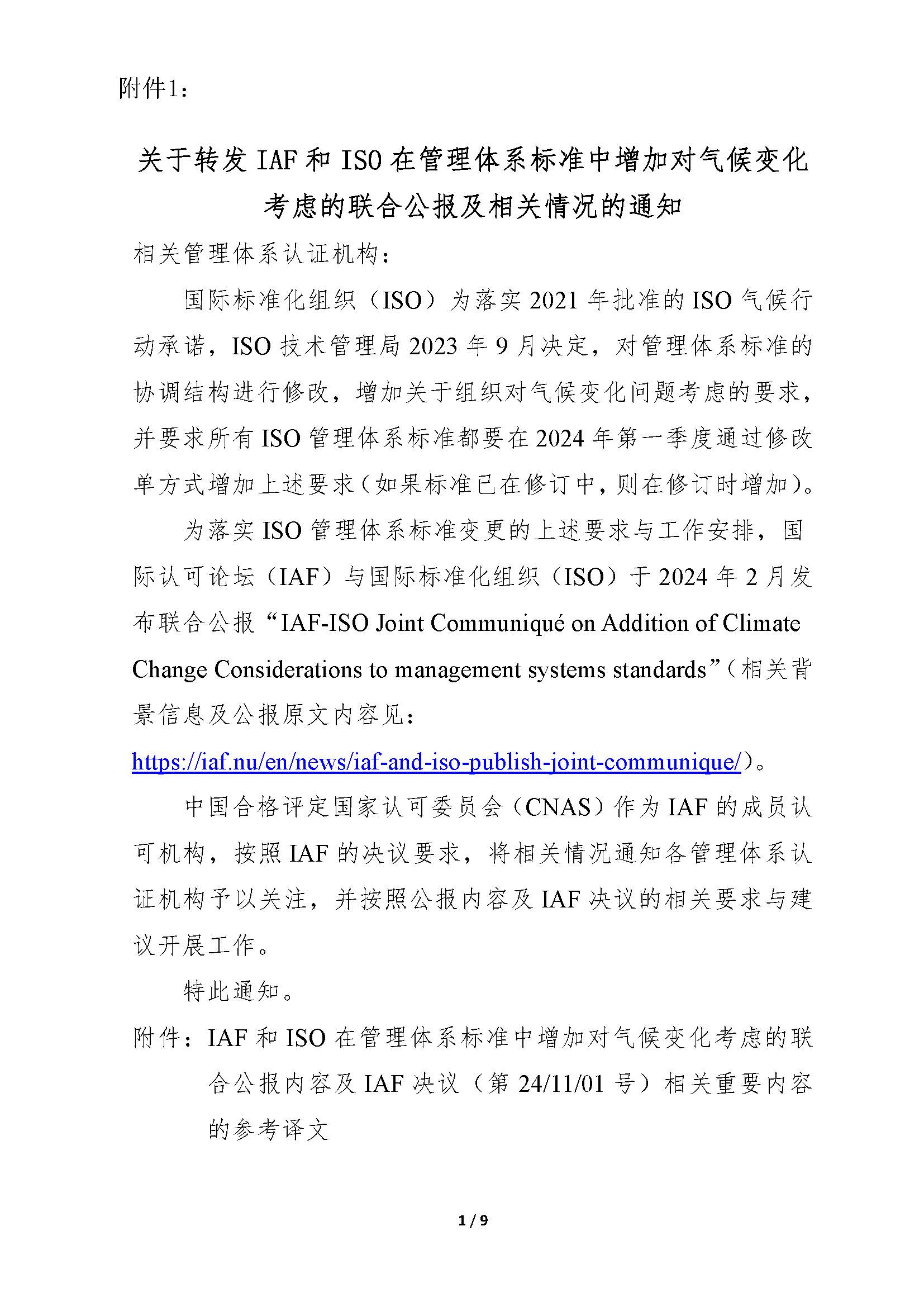 upload/IAF和ISO在管理體系標(biāo)準(zhǔn)中增加對(duì)氣候變化考慮的聯(lián)合公報(bào)及相關(guān)情況的通知.pdf |