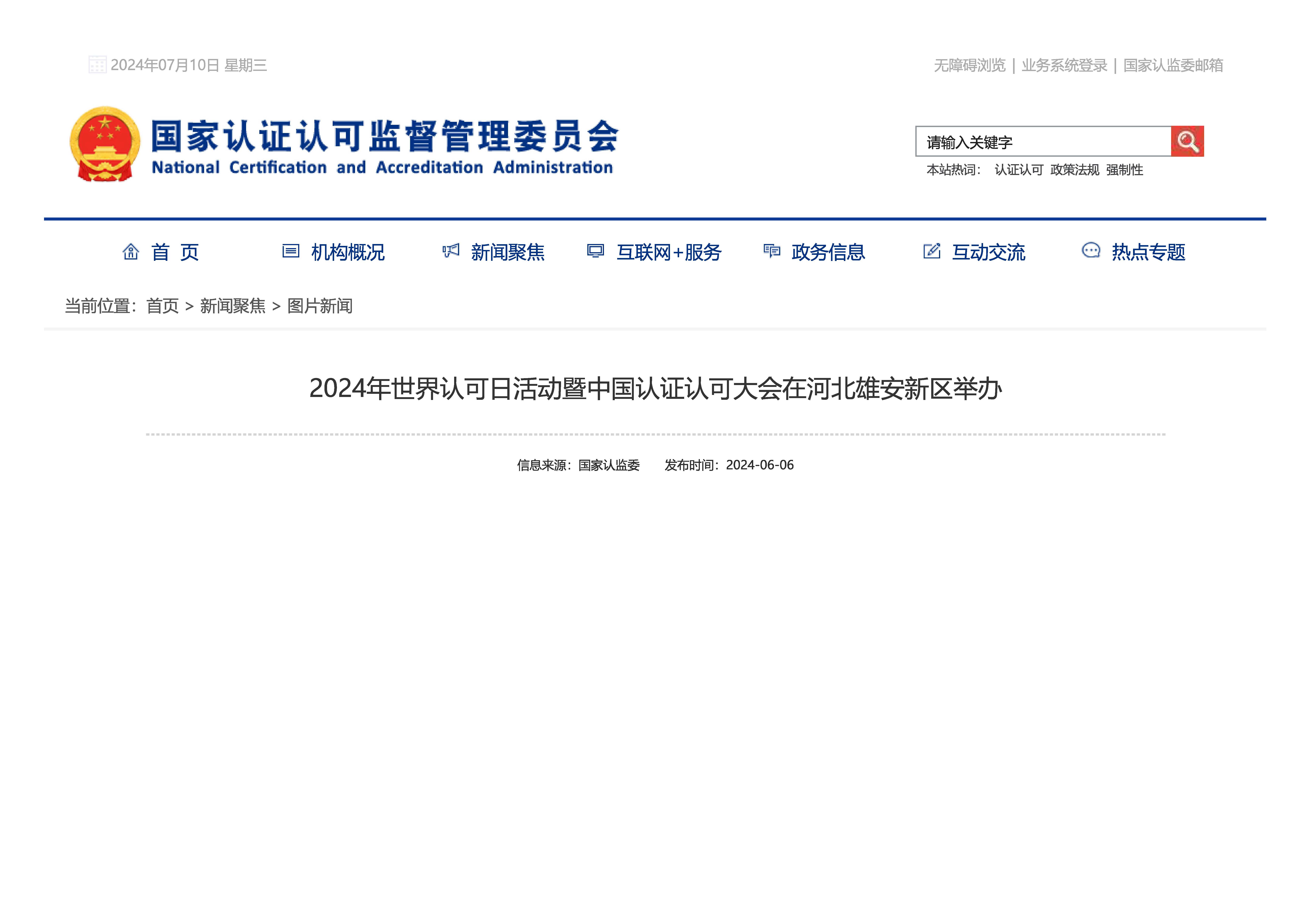 2024年世界認(rèn)可日活動(dòng)暨中國(guó)認(rèn)證認(rèn)可大會(huì)在河北雄安新區(qū)舉辦發(fā)表時(shí)間:2024年07月15日